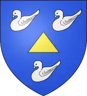 D’azur au triangle d’or accompagné de trois colombes d’argent, qui est de Saint-Médarde