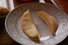 - (Pâtisserie) Pâtisserie magrébine à base de pâte d’amande, parfumée d’eau de fleur d’oranger, en forme de petit croissant.