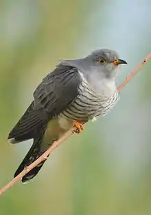- (Ornithologie) Espèce d’oiseau au plumage gris bleu ou brun avec le ventre rayé, coucou de l’Ancien Monde, parasitant les couvées d’autres oiseaux.