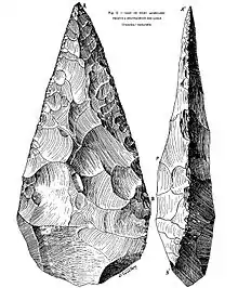- (Paléontologie) Outil et arme préhistorique constitué d’un nucléus de pierre taillée en ogive.