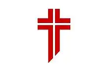 - Croix latine dont la base a la forme d’un biseau.