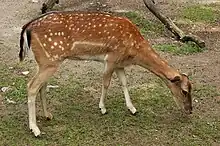 - (Zoologie) Espèce de daim d’Europe et du Proche-Orient, dont la robe est habituellement fauve-roussâtre, tachetée de blanc en été, brune en hiver.