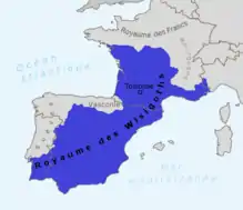 Del tiempo de los godos, extension du Royaume wisigoth de Toulouse vers 500.