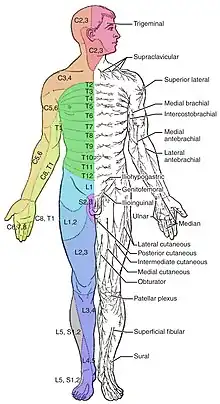 Les dermatomes de la partie antérieure d'un humain. (sens 1)