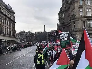 Pancarte reprenant le slogan en anglais dans une manifestation à Édimbourg le 2 décembre 2023.