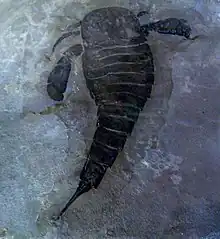 - Sous-classe des mérostomes : grands arthropodes fossiles marins prédateurs du Paléozoïque semblables à des scorpions munis de larges pinces.