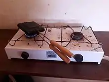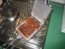 - (Cuisine) Sorte de moule en métal qui se ferme à l’aide de manches en bois pour faire cuire un croque-monsieur ou d’autres sandwichs au-dessus du feu.
