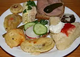 finger foods \ˈfɪŋ.ɡə fuːdz\ |