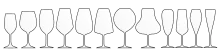 Verres à vin et flûtes à champagne de différentes formes - silhouettes.