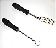 - Ustensile qui sert à tremper des préparations dans du chocolat sans laisser de trace de doigts ou des marques d'instrument.