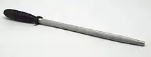 - (Cuisine) Aiguisoir à couteaux constitué d'une tige d'acier finement striée dans le sens de la longueur et emmanchée.