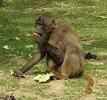 Le gélada ou « zingero » en amharique est un grand singe qui a l’allure d’un babouin et possédant un dimorphisme sexuel marqué (11kg pour les femelles 18kg pour les mâles).