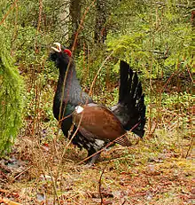 - (Ornithologie) Espèce d'oiseau de la sous-famille des tétraoninés (tétras et alliés), un gros tétras habitant les forêts de conifères de montagnes, au plumage du mâle surtout gris à brun foncé, le poitrail à reflets métalliques, au plumage de la femelle surtout brun.