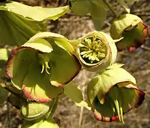 - (Botanique) Espèce d’hellébore, plante herbacée au feuillage persistant, à feuilles profondément divisées en 7 à 11 segments et à fleurs vertes symétriques en clochettes penchées.