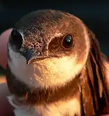 - (Ornithologie) Espèce d'oiseau, hirondelle au dos brun et à bande pectorale brun cendré.