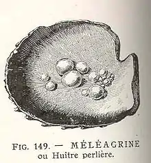 - Huitre à coquille d'aragonite des mers chaudes qui secrète des perles naturelles.