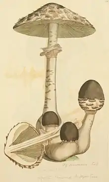 - (Mycologie) Espèce de champignons à lames, à bulbe et à anneau double, au chapeau couvert d'écailles laineuses et recourbées comme des guenilles.