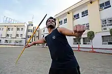 — (Jean Rostand, La Vie des crapauds, 1933)- (Sport) — Lancer de javelot.