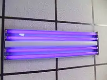 - (Physique, Dermatologie) Lumière composée de violet et d’ultraviolet (UVA). Elle rend fluorescents certaines choses qu'elle éclaire.