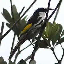 - (Ornithologie) Espèce de passereau d’Australie, proche du méliphage à croissants et du méliphage de Nouvelle-Hollande, qui partagent avec lui un plumage noir, blanc et jaune.