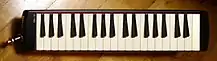 - (Musique) Instrument à vent, à verge métallique, apparenté à un harmonica mais comportant un clavier.