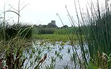 - (Géographie) Étendue de terrain périodiquement inondée ou continuellement humide, recouverte d’une nappe d’eau peu profonde.