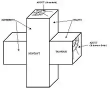 - (Maçonnerie, ) Pièce de bois, de pierre ou de fer, posée verticalement dans certains ouvrages de menuiserie, de serrurerie, etc.