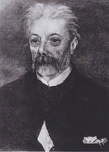 - (Sens figuré) (Barbe) Moustache large, retombant sur la bouche.