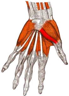 - (Anatomie) Muscle de l’éminence thénar de la main commençant sur le ligament annulaire antérieur du carpe, l’os trapèze, le trapézoïde et le capitum et se terminant sur le sésamoïde externe au niveau de l'articulation métacarpo-phalangienne.