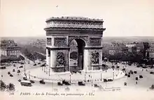 L'Arc de triomphe de la place de l'Étoile, à Paris, vers 1920.