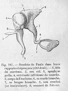Les trois osselets de l'oreille moyenne. (sens 1)