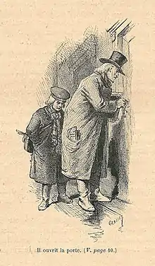 — (Robert Burnand, La vie quotidienne en France en 1830, 1943, page 64)Hervé les avait vus distinctement tracasser la grille et un grincement de ferrailles lui apprit qu'ils l’avaient fermé à clé, derrière eux, après l’avoir ouverte en arrivant, et qu'ils étaient en train de la rouvrir pour s’en aller.