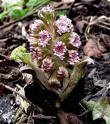 Le pétasite (Petasites japonicus) fleurit tôt au printemps, avant l’apparition de ses feuilles, car ses bourgeons floraux sont déjà formés en automne.