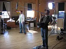 - (Par extension) Longue tige au bout de laquelle est fixé un microphone pour capter du son.