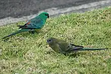- Perruche du sud-est australien, du genre Psephotus, au plumage à dominante verte, avec, pour le mâle seulement, une tache rouge au croupion. On l'élève en captivité.