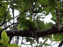 - Perruche de taille moyenne, du genre Cyanoramphus, au plumage vert avec le front rouge, vivant sur l'île Norfolk, en Australie.