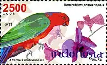 - Anglais : Moluccan king parrot (en), Ambon king parrot (en)