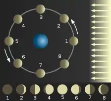 - (Astronomie) Cycle d’apparition de la lune et d’autres planètes, suivant la manière dont elles reçoivent la lumière du soleil au cours de leur révolution.