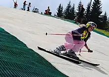 - (Sport) Surface utilisable pour la pratique du ski et plus généralement des sports de glisse, elle n’est pas recouverte de neige mais d’un matériau permettant de skier.