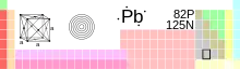 - (Chimie) Plomb. Élément chimique de numéro atomique 82 et de symbole Pb qui fait partie des métaux pauvres.