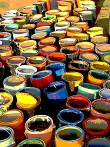 De nombreux pots de peinture. (1)