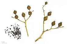 Une rue à feuilles étroites, fruits et graines.