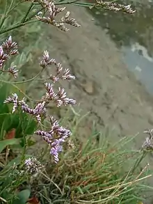 la saladelle commune (Limonium vulgare) ou lavande de mer, halophile (adaptée aux prés salés)