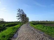 - (Cyclisme) Tronçon de route pavée emprunté par des courses cyclistes.