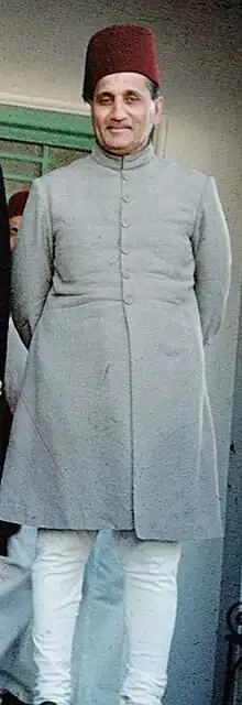 Homme d’Hyderabad portant à l’ancienne mode un sherwani et un fez ottoman.