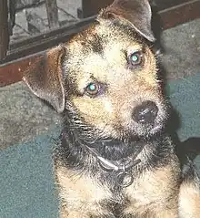 - Anglais : black and tan terrier (en), working Lakeland (en), patterdale terrier (en)