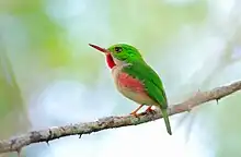 Le todier à bec large (Todus subulatus) est l'une des deux espèces de todidés à nicher sur l'île d'Hispaniola.