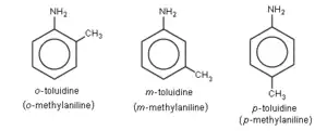 - (Chimie) Nom donné à trois isomères de formule C7H9N utilisés dans la production de colorants.