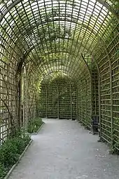 Berceau de treillage dans le bosquet de l’Encelade des jardins de Versailles.