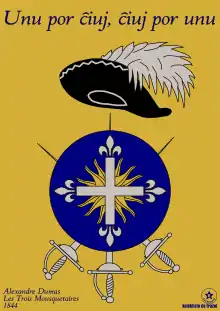 unu por ĉiuj, ĉiuj por unu \ˈu.nu por ˈt͡ʃi.uj ˈt͡ʃi.uj por ˈu.nu\